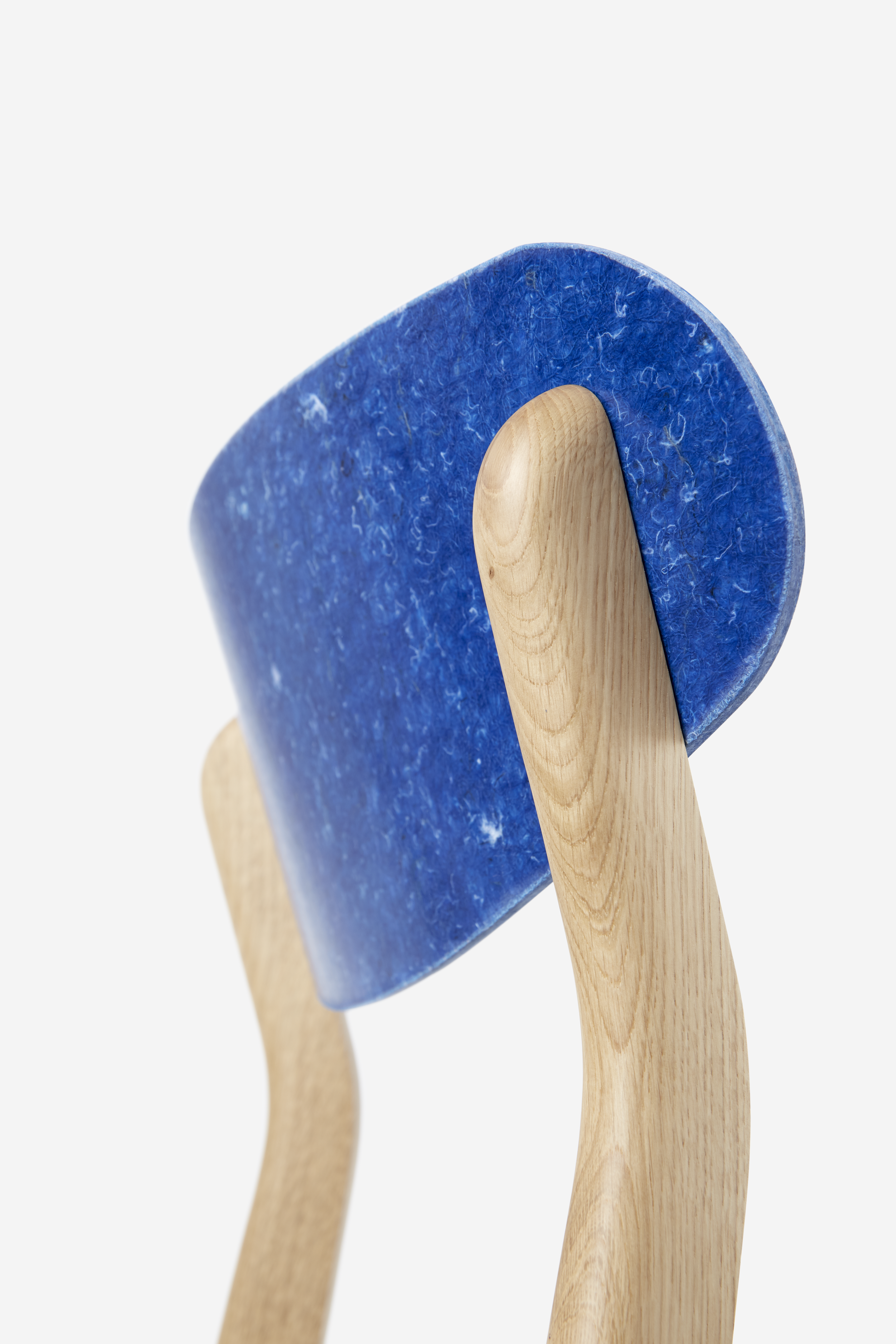 The recycled material made of textile waste and biobased resources lent itself perfectly for 3D forming parts, which will be pressed into a mold to the desired product. Since it can be pressed into any form, it raises design freedom. For example, from seatings for chairs to clothing hangers and suitcases to skateboards. The material always comes to its own and not to mention it is 100% recyclable.